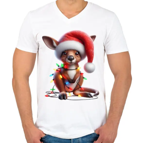 1 kép PRINTFASHION Cuki karácsonyi kenguru kölyök - Férfi V-nyakú póló - Fehér