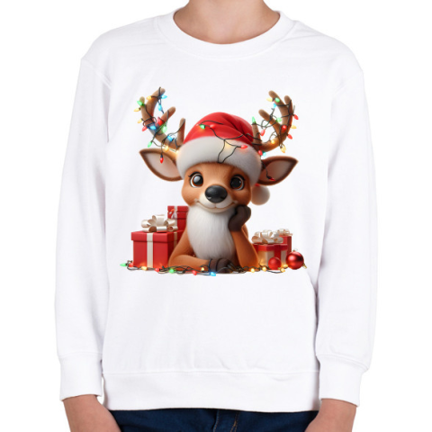 1 kép PRINTFASHION Cuki karácsonyi rénszarvas - Gyerek pulóver - Fehér