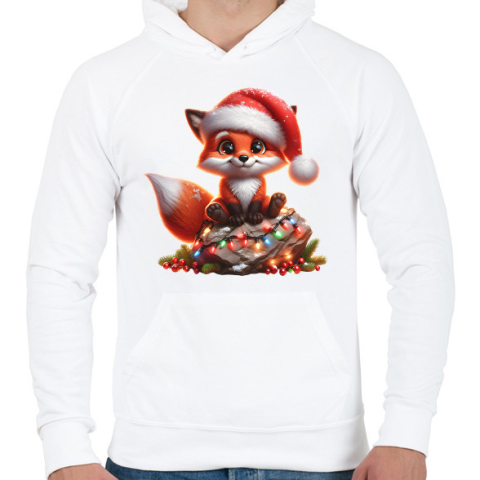 1 kép PRINTFASHION Cuki karácsonyi Róka - Férfi kapucnis pulóver - Fehér