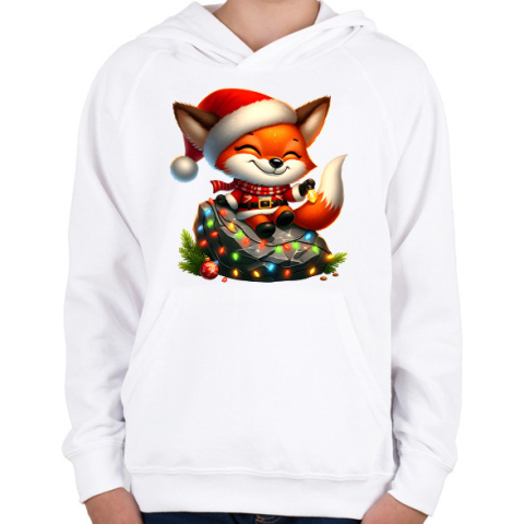 1 kép PRINTFASHION Cuki karácsonyi róka - Gyerek kapucnis pulóver - Fehér