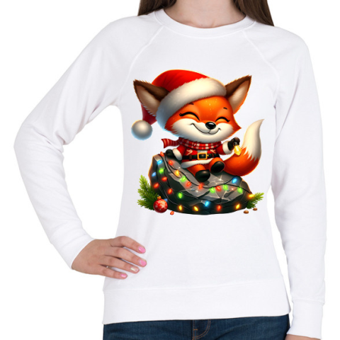 1 kép PRINTFASHION Cuki karácsonyi róka - Női pulóver - Fehér