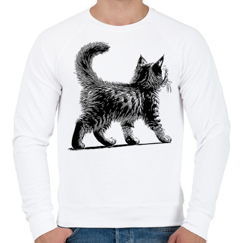 1 kép PRINTFASHION Cuki Kiscica / Cica / Macska rajz - Férfi pulóver - Fehér