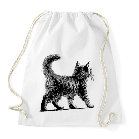 1 kép PRINTFASHION Cuki Kiscica / Cica / Macska rajz - Sportzsák, Tornazsák - Fehér