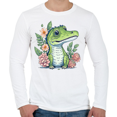 1 kép PRINTFASHION Cuki krokodil virágokkal - Férfi hosszú ujjú póló - Fehér