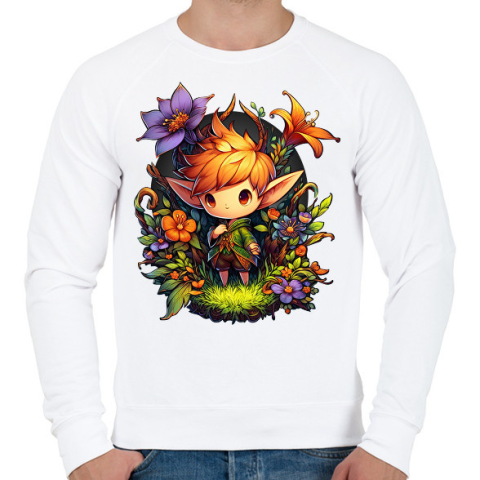 1 kép PRINTFASHION Cuki manógyerek virágokkal - Férfi pulóver - Fehér