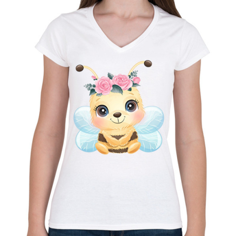 1 kép PRINTFASHION Cuki méhecske - Női V-nyakú póló - Fehér