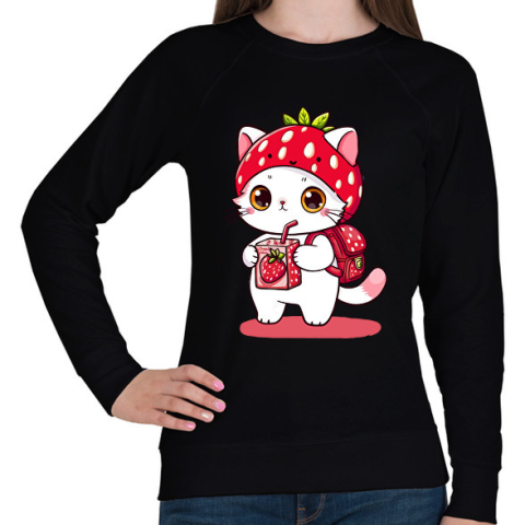 1 kép PRINTFASHION Cuki szamóca cica - Női pulóver - Fekete