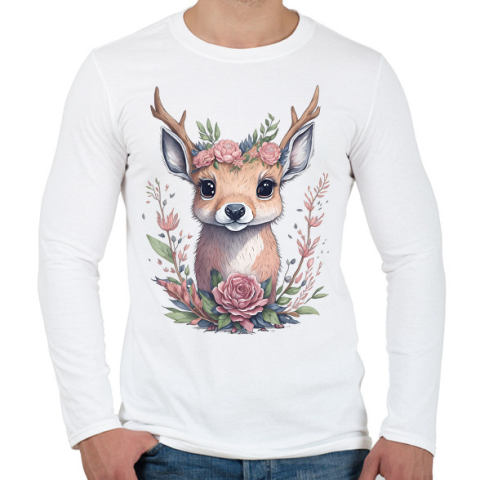 1 kép PRINTFASHION Cuki szarvas bébi virágokkal - Férfi hosszú ujjú póló - Fehér