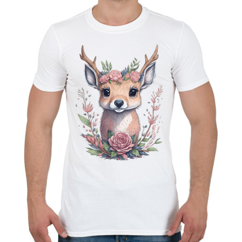 1 kép PRINTFASHION Cuki szarvas bébi virágokkal - Férfi póló - Fehér