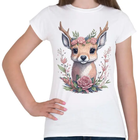 1 kép PRINTFASHION Cuki szarvas bébi virágokkal - Női póló - Fehér