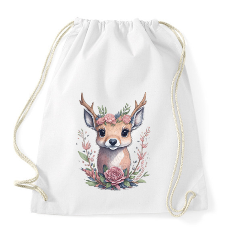 1 kép PRINTFASHION Cuki szarvas bébi virágokkal - Sportzsák, Tornazsák - Fehér