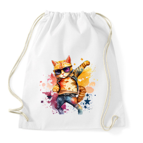 1 kép PRINTFASHION Cuki szupersztár macska - Sportzsák, Tornazsák - Fehér