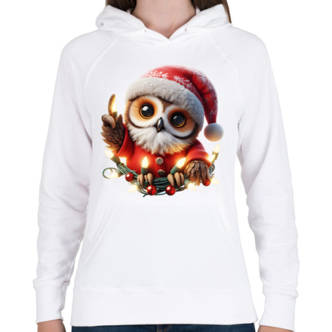 1 kép PRINTFASHION Cuki vicces karácsonyi party bagoly - Női kapucnis pulóver - Fehér