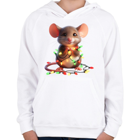 1 kép PRINTFASHION Cuki vicces karácsonyi party egér - Gyerek kapucnis pulóver - Fehér