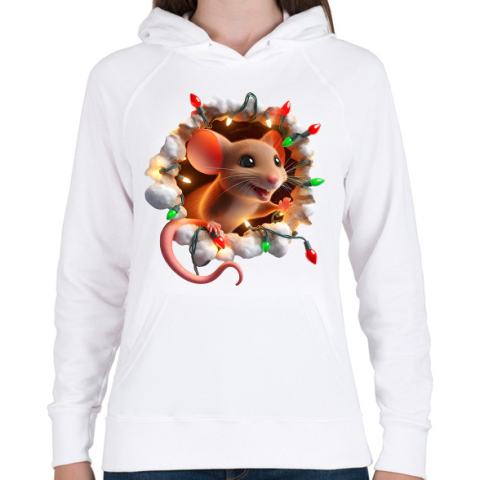 1 kép PRINTFASHION Cuki vicces karácsonyi party egér - Női kapucnis pulóver - Fehér