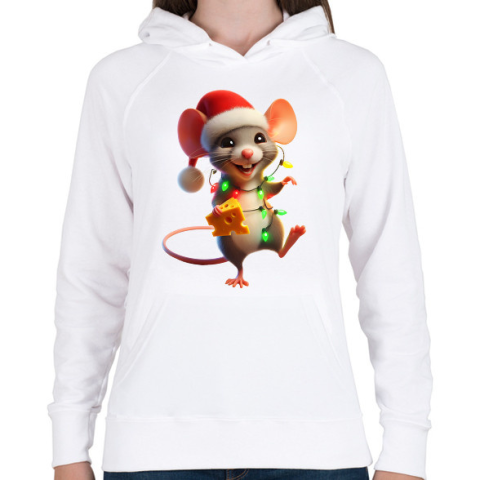 1 kép PRINTFASHION Cuki vicces karácsonyi party egér - Női kapucnis pulóver - Fehér