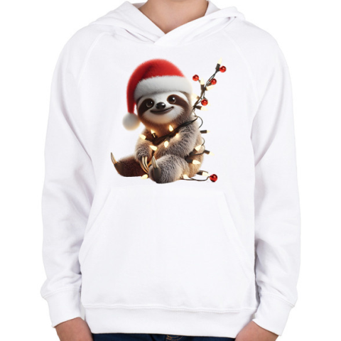 1 kép PRINTFASHION Cuki vicces karácsonyi party lajhár - Gyerek kapucnis pulóver - Fehér