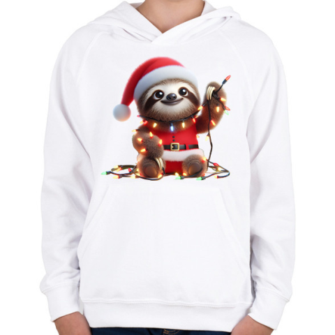 1 kép PRINTFASHION Cuki vicces karácsonyi party lajhár - Gyerek kapucnis pulóver - Fehér