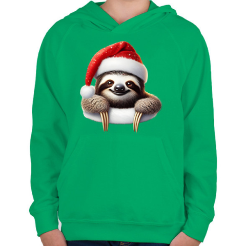 1 kép PRINTFASHION Cuki vicces karácsonyi party lajhár - Gyerek kapucnis pulóver - Zöld