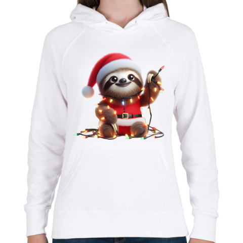 1 kép PRINTFASHION Cuki vicces karácsonyi party lajhár - Női kapucnis pulóver - Fehér