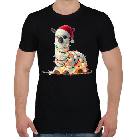 1 kép PRINTFASHION Cuki vicces karácsonyi party láma - Férfi póló - Fekete