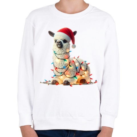 1 kép PRINTFASHION Cuki vicces karácsonyi party láma - Gyerek pulóver - Fehér
