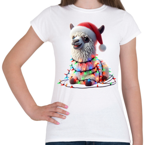 1 kép PRINTFASHION Cuki vicces karácsonyi party láma - Női póló - Fehér