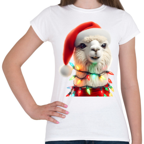 1 kép PRINTFASHION Cuki vicces karácsonyi party láma - Női póló - Fehér