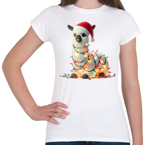 1 kép PRINTFASHION Cuki vicces karácsonyi party láma - Női póló - Fehér