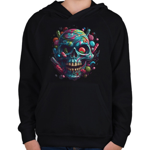 1 kép PRINTFASHION Cukorka koponya - Gyerek kapucnis pulóver - Fekete