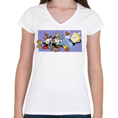 1 kép PRINTFASHION Cuphead sütik - Női V-nyakú póló - Fehér