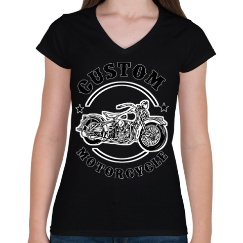 1 kép PRINTFASHION custom motorcycle - Női V-nyakú póló - Fekete