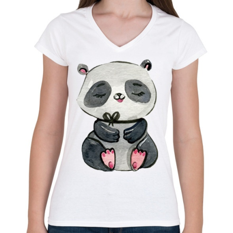 1 kép PRINTFASHION Cute Panda girl - Női V-nyakú póló - Fehér