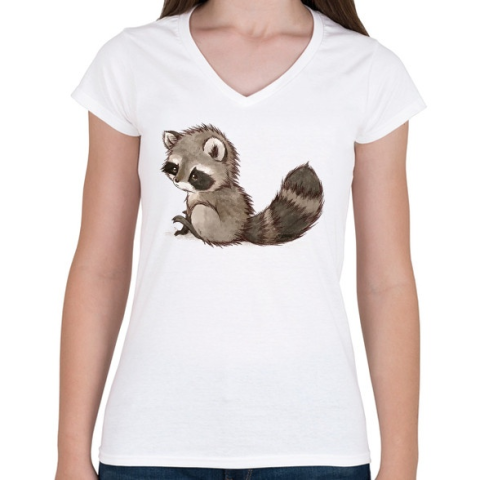 1 kép PRINTFASHION Cute Raccoon - Női V-nyakú póló - Fehér