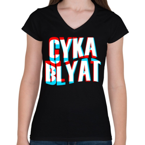 1 kép PRINTFASHION Cyka Blyat - Női V-nyakú póló - Fekete
