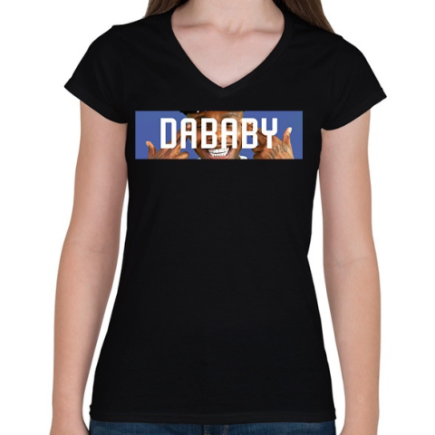 1 kép PRINTFASHION DaBaby - Női V-nyakú póló - Fekete