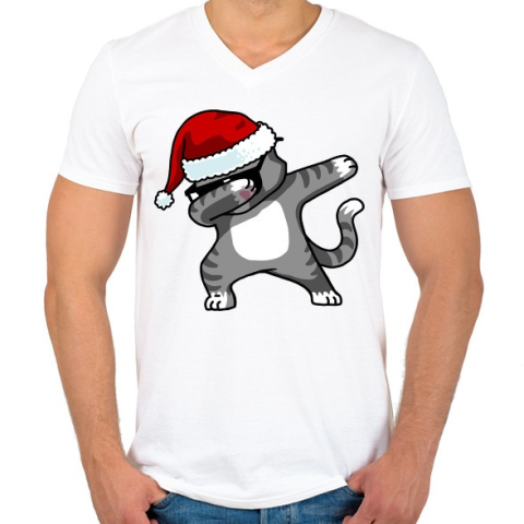 1 kép PRINTFASHION Dabbing cica - Férfi V-nyakú póló - Fehér