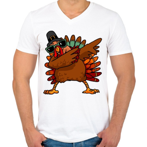 1 kép PRINTFASHION Dabbing pulyka - Férfi V-nyakú póló - Fehér
