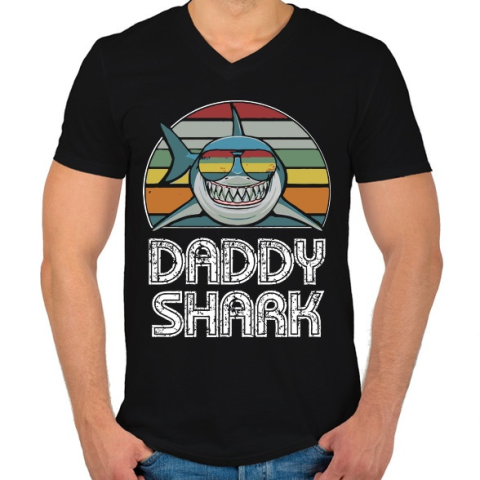 1 kép PRINTFASHION Daddy shark - Férfi V-nyakú póló - Fekete