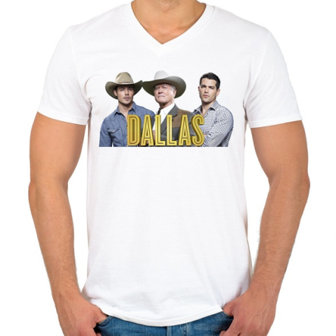 1 kép PRINTFASHION Dallas - Férfi V-nyakú póló - Fehér