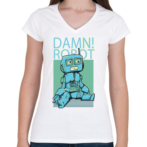 1 kép PRINTFASHION Damn Robot- - Női V-nyakú póló - Fehér
