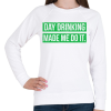 1 kép PRINTFASHION Day drink made me do it - Női pulóver - Fehér