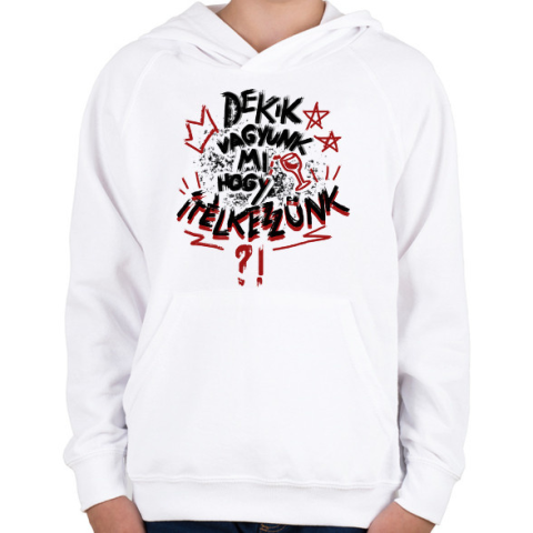 1 kép PRINTFASHION De kik vagyunk mi, hogy ítélkezzünk? - Gyerek kapucnis pulóver - Fehér