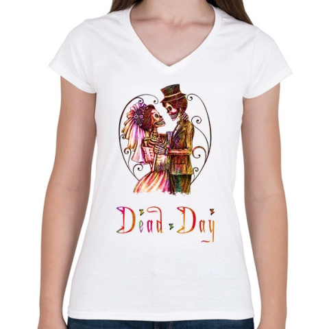 1 kép PRINTFASHION dead day - Női V-nyakú póló - Fehér