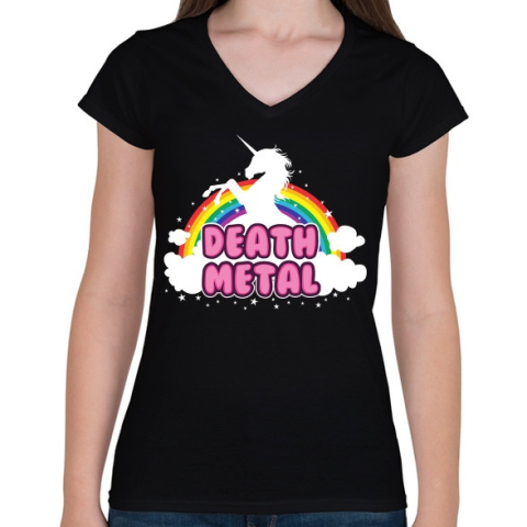 1 kép PRINTFASHION Death Metal unikornis - Női V-nyakú póló - Fekete
