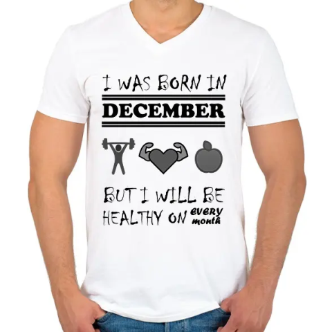 1 kép PRINTFASHION Decemberben születtem de minden hónapban egészségesen élek - Férfi V-nyakú póló - Fehér