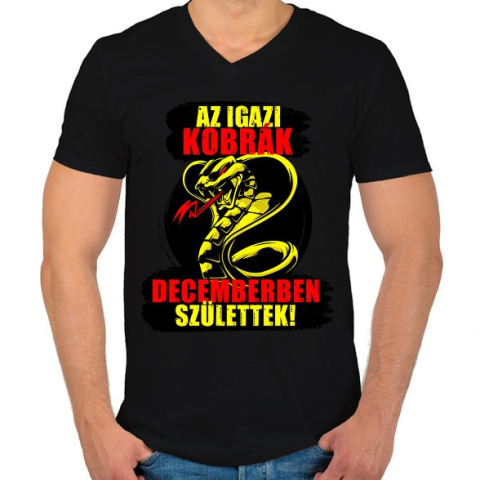1 kép PRINTFASHION Decemberi Kobra - Férfi V-nyakú póló - Fekete