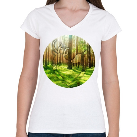 1 kép PRINTFASHION Deer couple - Női V-nyakú póló - Fehér