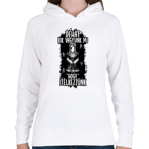1 kép PRINTFASHION Dehát kik vagyunk mi hogy ítélkezzünk?! - Női kapucnis pulóver - Fehér