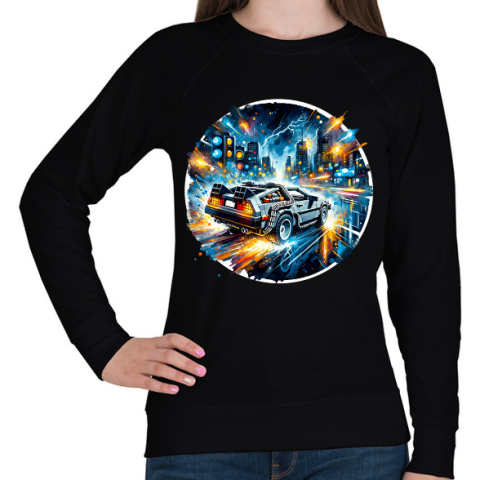 1 kép PRINTFASHION DeLorean - Vissza a jövőbe - Női pulóver - Fekete